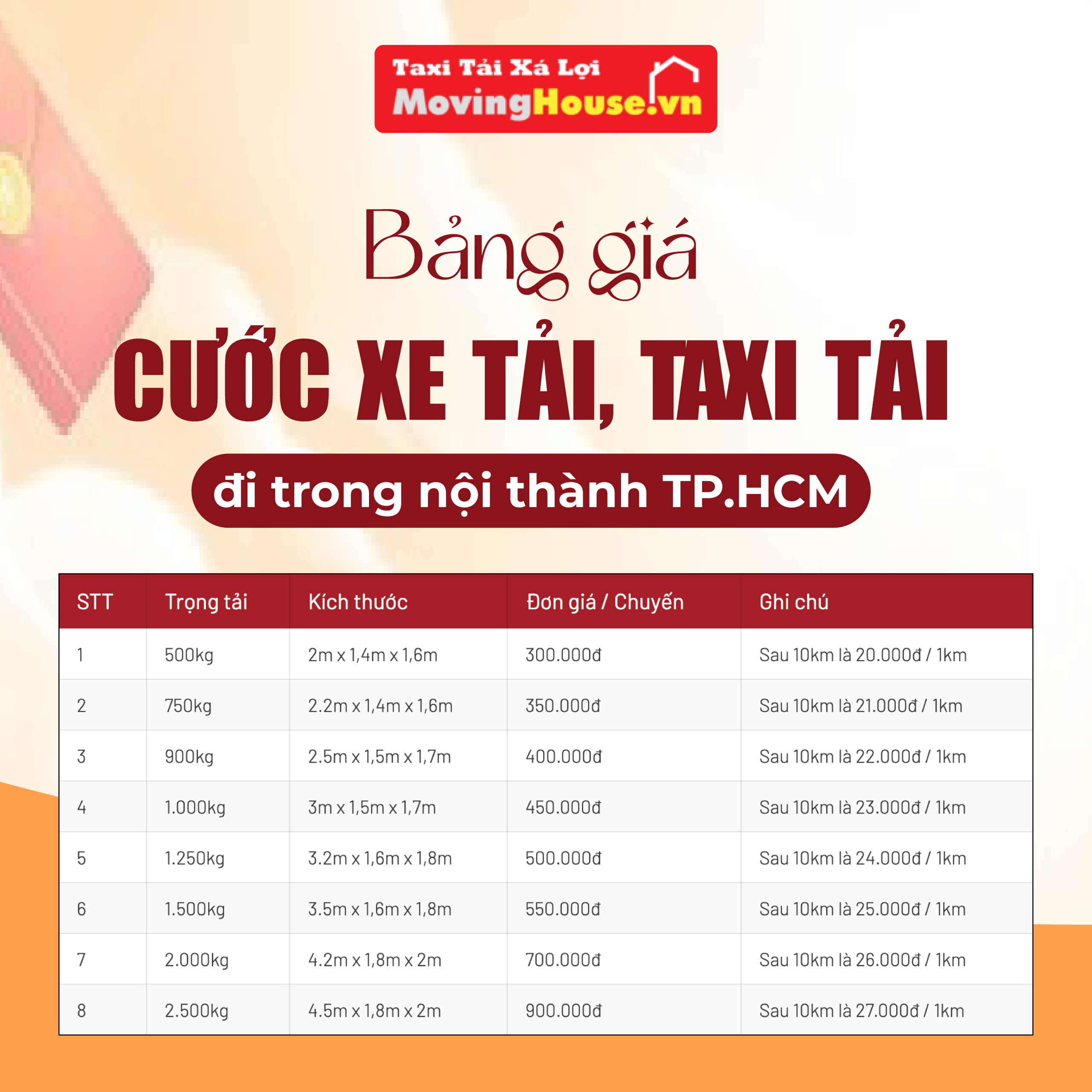 Bảng giá cước xe tải, taxi tải đi trong nội thành TP.HCM – Moving House