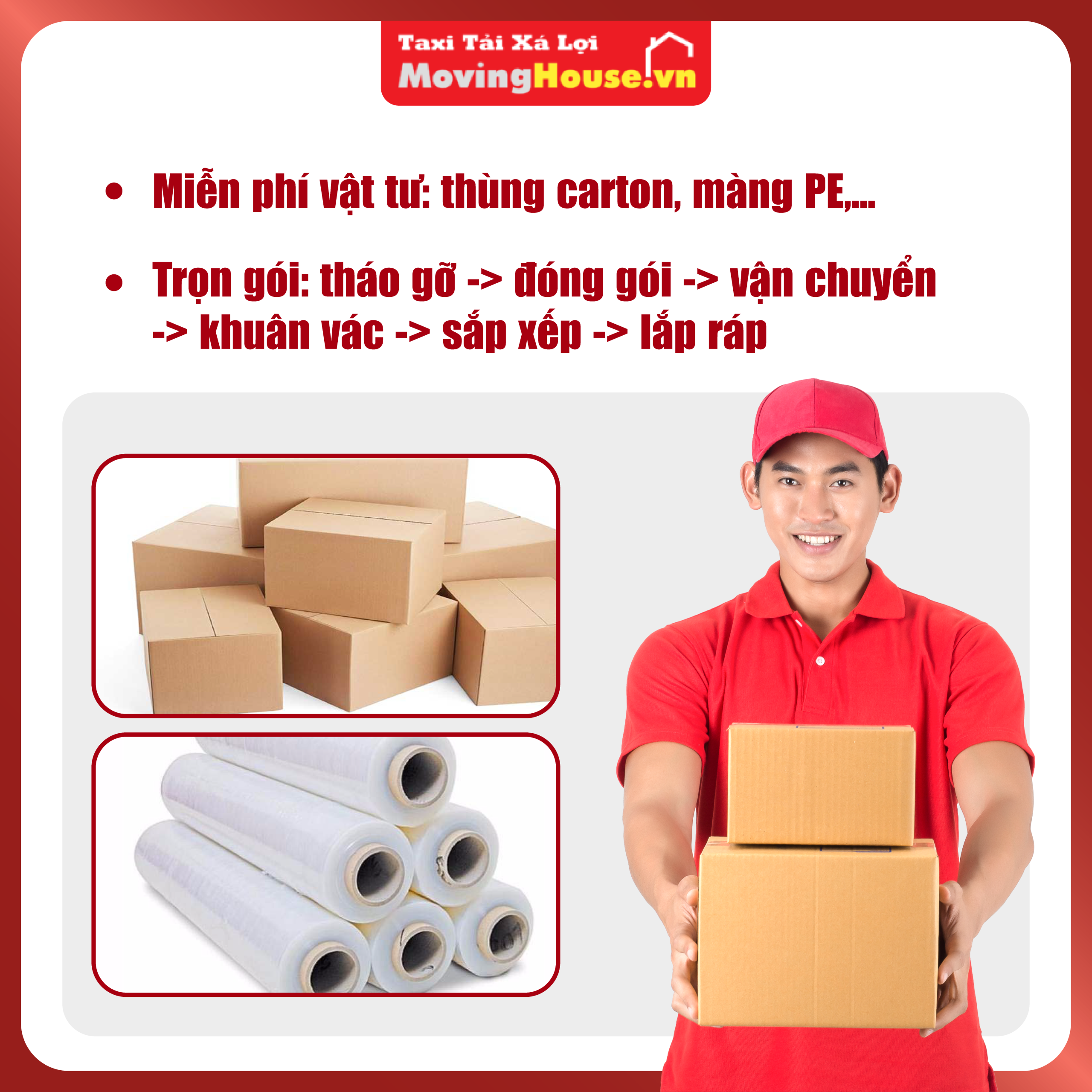 Giai đoạn đóng gói và tháo lắp là khâu quan trọng nhất trong dịch vụ chuyển nhà trọn gói. Các nhân viên kỹ thuật sẽ tiến hành phân loại đồ đạc theo từng phòng, đánh dấu rõ ràng trên thùng carton để thuận tiện cho việc sắp xếp tại nơi ở mới. Đồ nội thất gỗ, giường tủ hay thiết bị điện lạnh đều được tháo dỡ bởi những thợ lành nghề, đảm bảo đúng kết cấu và không gây trầy xước. Khi đến địa chỉ mới, chúng tôi không chỉ xuống hàng mà còn hỗ trợ khách hàng lắp đặt lại nội thất và sắp xếp không gian theo đúng ý muốn, giúp bạn ổn định cuộc sống chỉ trong vài giờ đồng hồ.