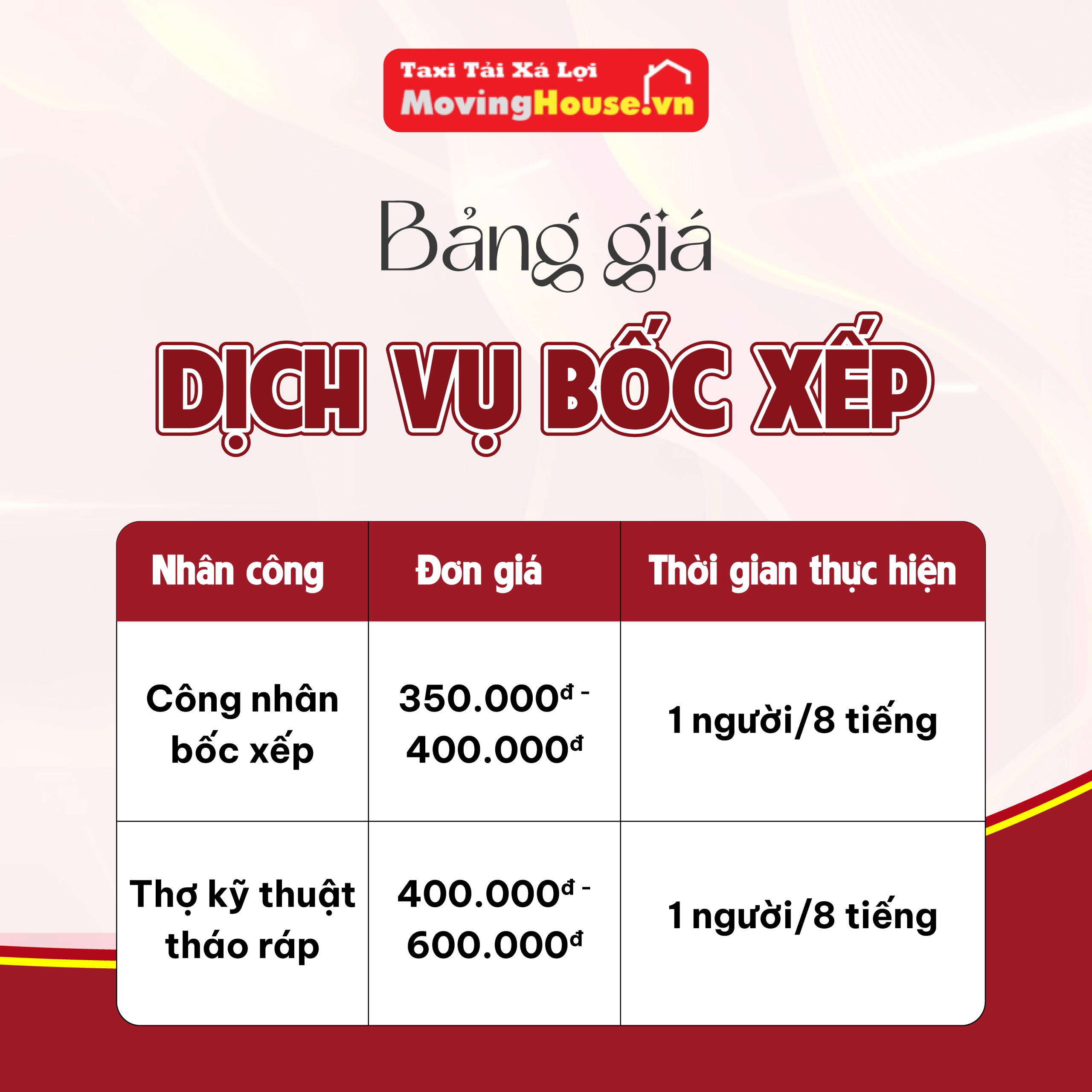 Bảng giá dịch vụ bốc xếp tại Moving House